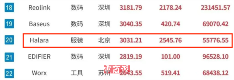 Halara登上跨境電商品牌影響力榜Top20?圖源:易勢科技