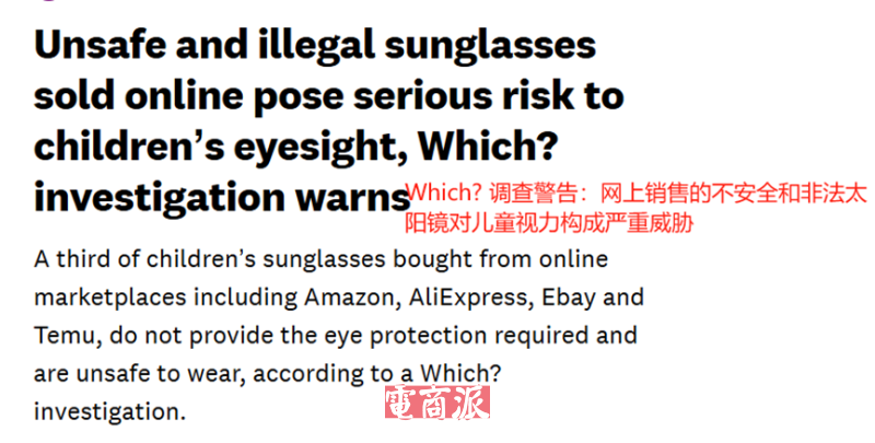 消息顯示,近日,英國消費者權益組織Which?近期對英國兒童太陽眼鏡市場進行了一項調查,調查結果顯示,亞馬遜、全球速賣通、eBay和Temu等知名在線平臺未能完全盡到市場監管責任,他們所銷售的兒童太陽眼鏡產品中有三分之一無法提供所需的眼睛保護作用,長期佩戴會影響兒童眼睛健康。