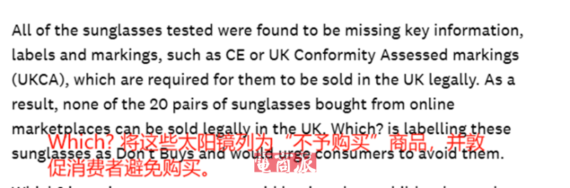 對此,Which?表示,這20款太陽鏡產品都不具備在英國市場銷售的資格,已將其列為“不要購買”(Don’t Buy)商品,同時該機構督促消費者盡量避免從線上平臺購買廉價商品,包括低價的兒童產品、電子產品、化妝品和醫療保健品等,尤其是那些看起來沒有品牌的產品,因為它們可能存在安全隱患。