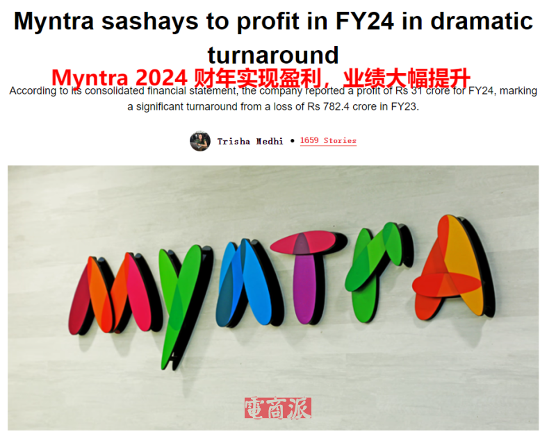 Myntra 2024財年實現扭虧為盈 圖源:yourstory