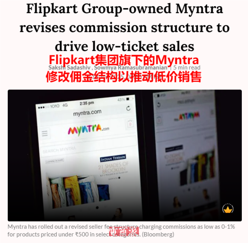 具體來看,針對西裝、運動服飾、貼身衣物等特定品類中價格低于500盧比(約合42人民幣)的商品,Myntra將其銷售傭金比例降至0-1%,相比此前15-16%的傭金比例大幅下調。