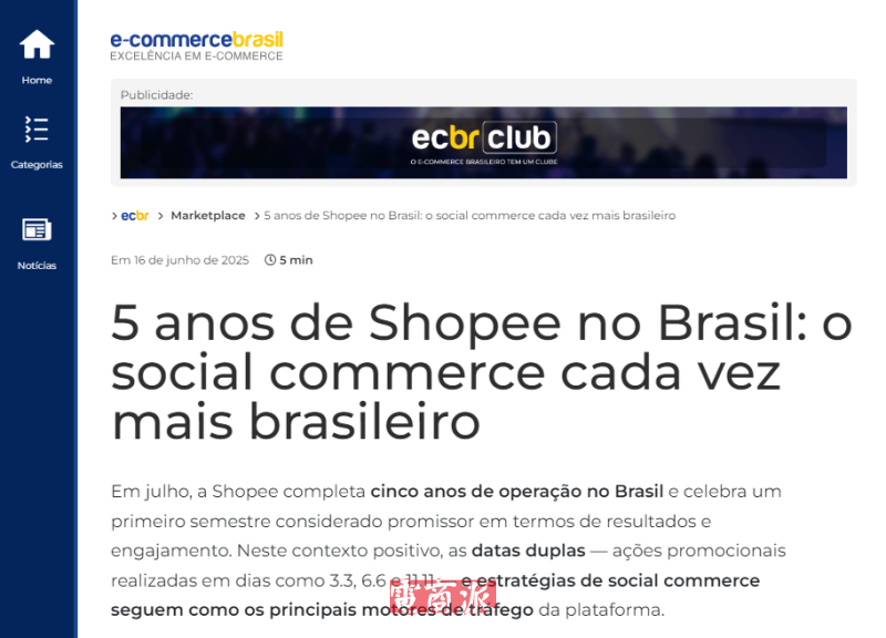 6月18日消息,Shopee即將迎來進軍巴西市場五周年,社交電商業務持續本地化并推動用戶參與創新高。自2025年初以來,該平臺在業績表現和用戶互動方面均展現出強勁增長勢頭,尤其是在3月3日、6月6日和雙十一等大型促銷活動的推動下,社交電商策略已成為主要的流量驅動力之一。