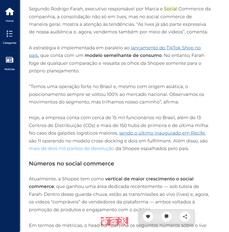 Shopee品牌與社交商務負責人Rodrigo Farah表示,直播目前已成為平臺用戶的重要組成部分,視頻內容也成為銷售和互動的新渠道。在他的領導下,社交商務已成為Shopee增長最快的垂直業務板塊,并設立了專門團隊推進該領域發展,其中包括賣家生成的“可購物”視頻與平臺直播。