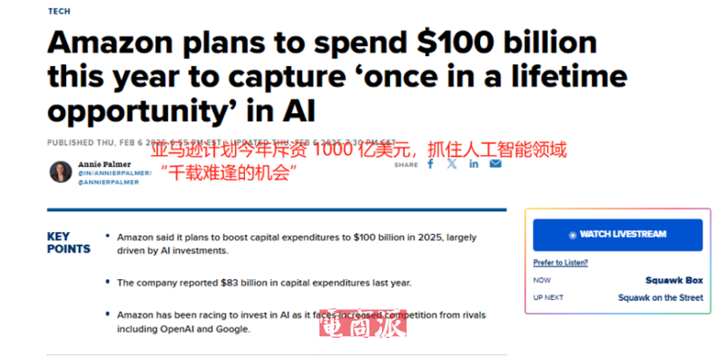 亞馬遜計劃在AI領域投資1000億美元 圖源:CNBC