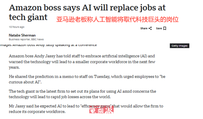 亞馬遜CEO稱人工智能將取代科技巨頭的崗位 圖源:BBC