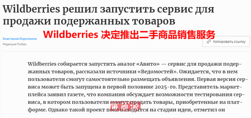Wildberries計劃推出轉售服務 圖源:forbes.ru