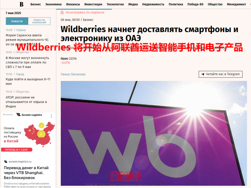Wildberries銷售阿聯酋商品 圖源:vedomosti.ru