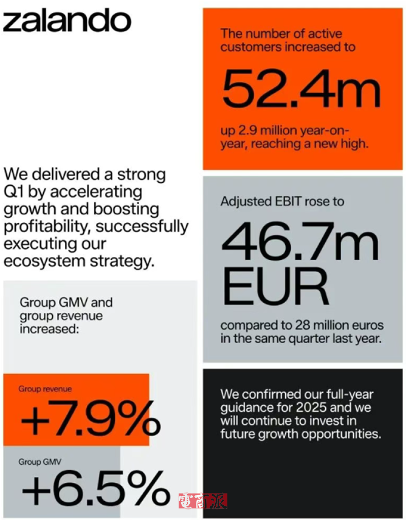 Zalando 2025年第一季度業績 圖源:Zalando嘉蘭朵