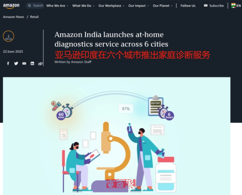 詳細來看,日前亞馬遜印度公司宣布進軍醫療保健領域,推出亞馬遜診斷服務(Amazon Diagnostics),提供上門醫療保健服務。這一服務的推出標志著其在印度構建全流程醫療健康體驗的重要進展,加上其現有的藥房和在線診所服務,進一步夯實了亞馬遜醫療的基礎架構。