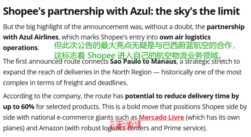 Shopee與巴西航空物流公司達成合作 圖源:CPG