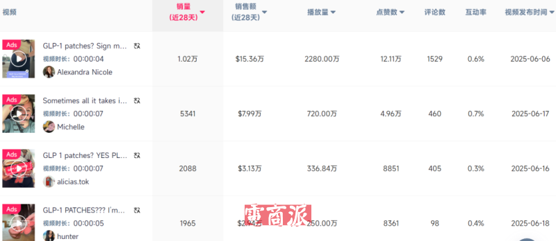 近日,FastMoss數據顯示一款名為GLP-1代謝平衡外用貼劑在TikTok美區大受歡迎,在過去的28天里,該商品在美國的美妝個護、特殊個護、保健食品類目里,銷售增長迅猛,已售出超9萬件,總銷售額達到140.7萬美元。而在6.19-6.25的一周中,更是問鼎TikTok美國銷量榜、保健類目銷量榜雙榜冠軍,表現十分亮眼。