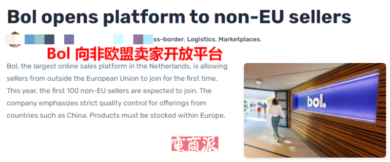 近日,荷蘭最大電商平臺(tái)Bol宣布,將開(kāi)放非歐盟賣家入駐,并在今年內(nèi)引進(jìn)100家國(guó)際賣家,其中也包括中國(guó)賣家。