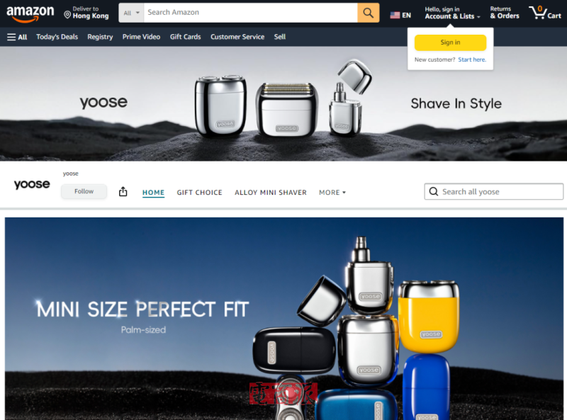 Yoose亞馬遜店鋪首頁 圖源:亞馬遜