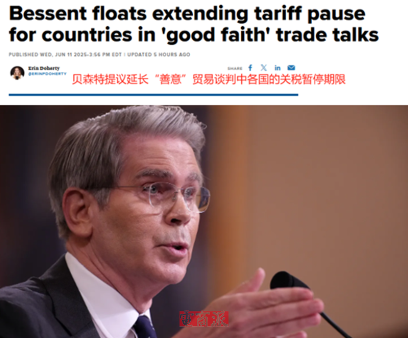 貝森特提議延長關稅暫緩期圖源:CNBC