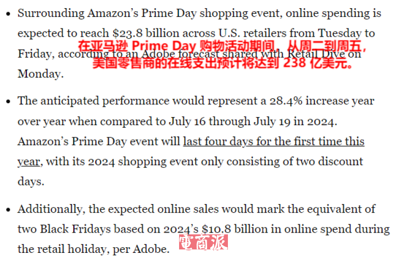 Prime Day期間美國在線零售額將大幅提升 圖源:retail dive