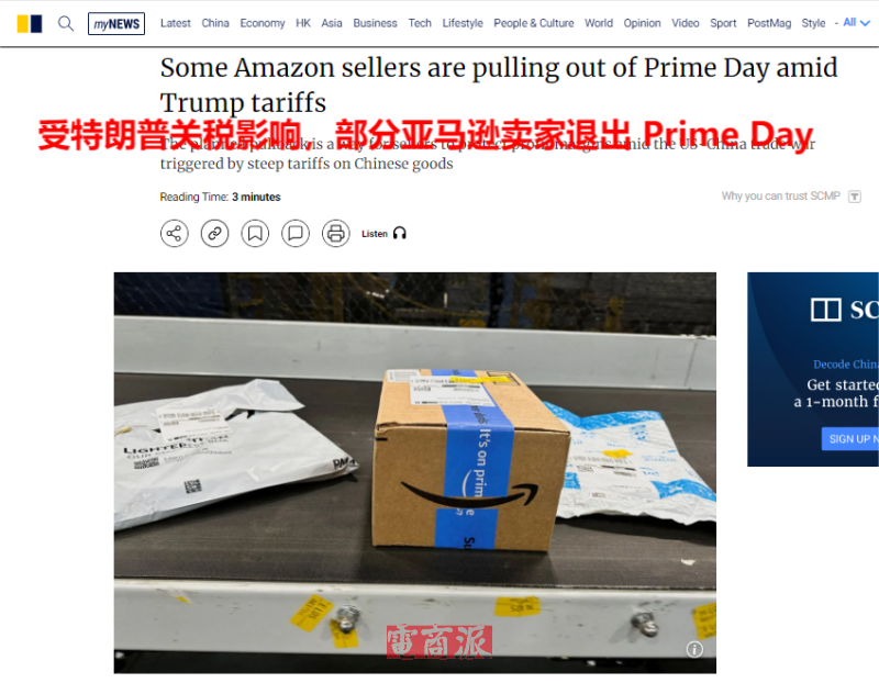 部門亞馬遜賣家將退出PrimeDay 圖源:SCMP