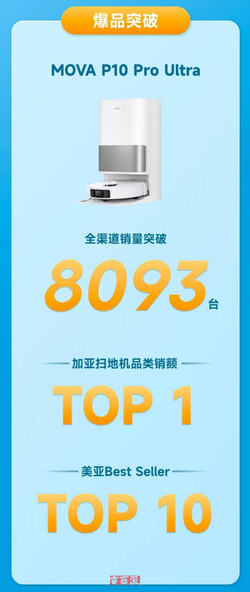 與此同時,在北美市場,MOVA同樣迎來重大突破,全渠道GMV達3461萬元,直接刷新品牌北美銷售紀錄,旗下王牌單品掃地機P10 Pro Ultra銷售火爆,銷量突破8000臺。分地區看,在加拿大市場,MOVA掃地機穩居同品類銷售額第一;在美國市場,MOVA掃地機也是同類目BSR TOP 10,品牌影響力十分強勁。