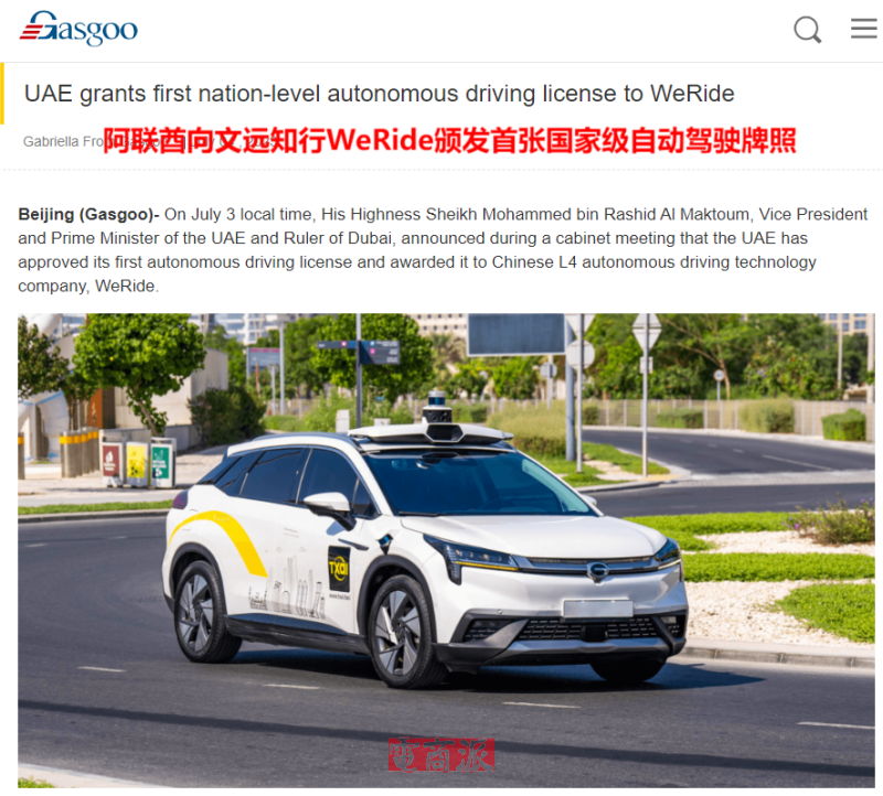 文遠知行穩步落地阿聯酋 圖源:gasgoo