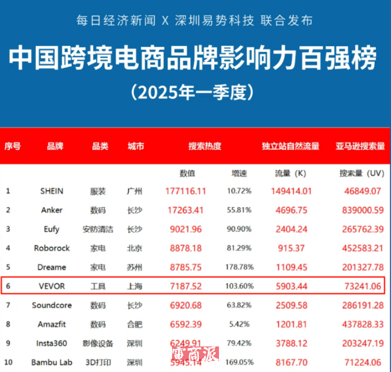 提到寵物用品,大多數人首先會想到的便是常見的寵物食品、玩具等熱門品類。當養寵越來越精細化時,一些細分的冷門領域也展現出了巨大的潛力,寵物智能穿戴設備就是其中一個。工具出海也是跨境圈的一個小眾領域,盡管如此,國產工具品牌VEVOR依然成功闖了出來,它的實力還受到了官方認可,在每日經濟新聞聯合深圳易勢科技發布的《中國跨境電商品牌影響力百強榜》中,VEVOR從2024第四季度的第八名躍升到2025第一季度的第六名。