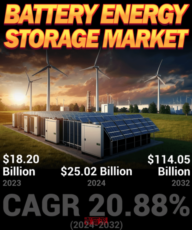 來自Fortune Business Insights發布的數據顯示,全球電池儲能市場規模在2024年就達到了250.2億美元,未來繼續增長,到2032年市場規模有望擴大至1140.5億美元,預測期內(2024年-2032年)的年復合增長率為20.88%。