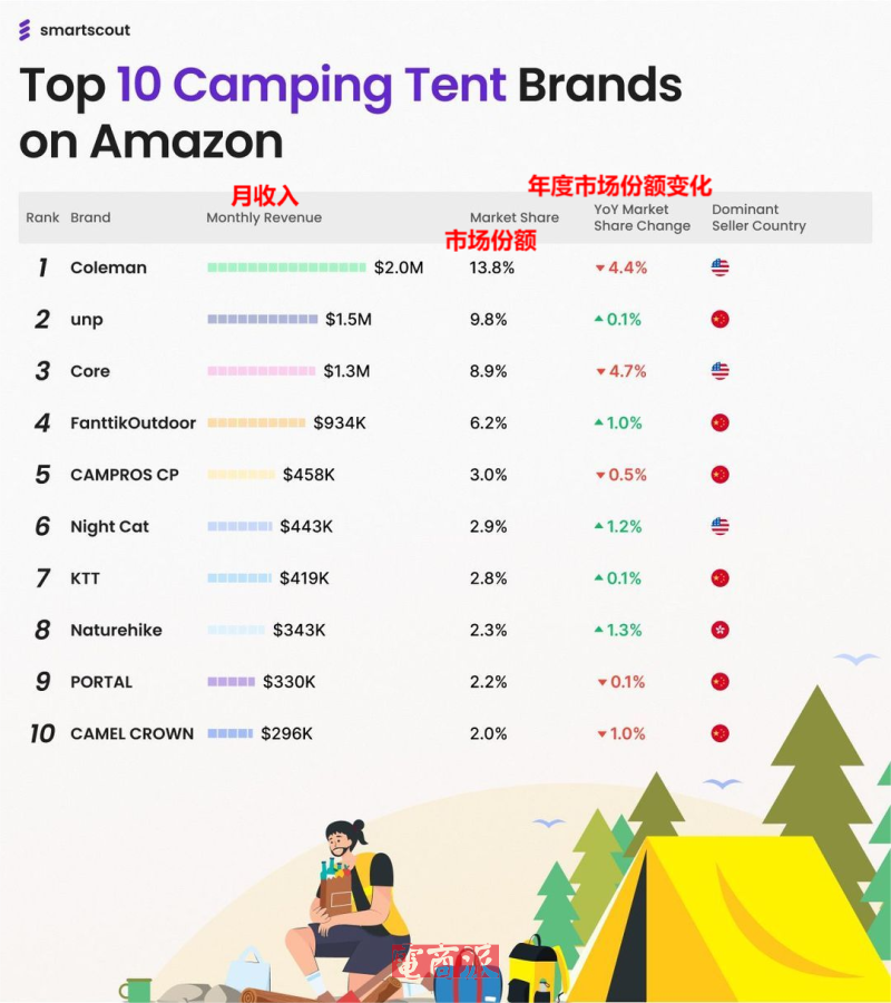 中國(guó)帳篷品牌占領(lǐng)亞馬遜 圖源:SmartScout