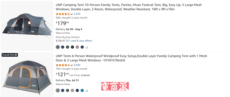 UNP帳篷在亞馬遜熱銷(xiāo) 圖源:Amazon