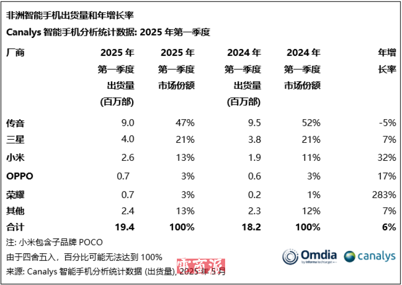 傳音控股非洲手機出貨量第一 圖源:Canalys