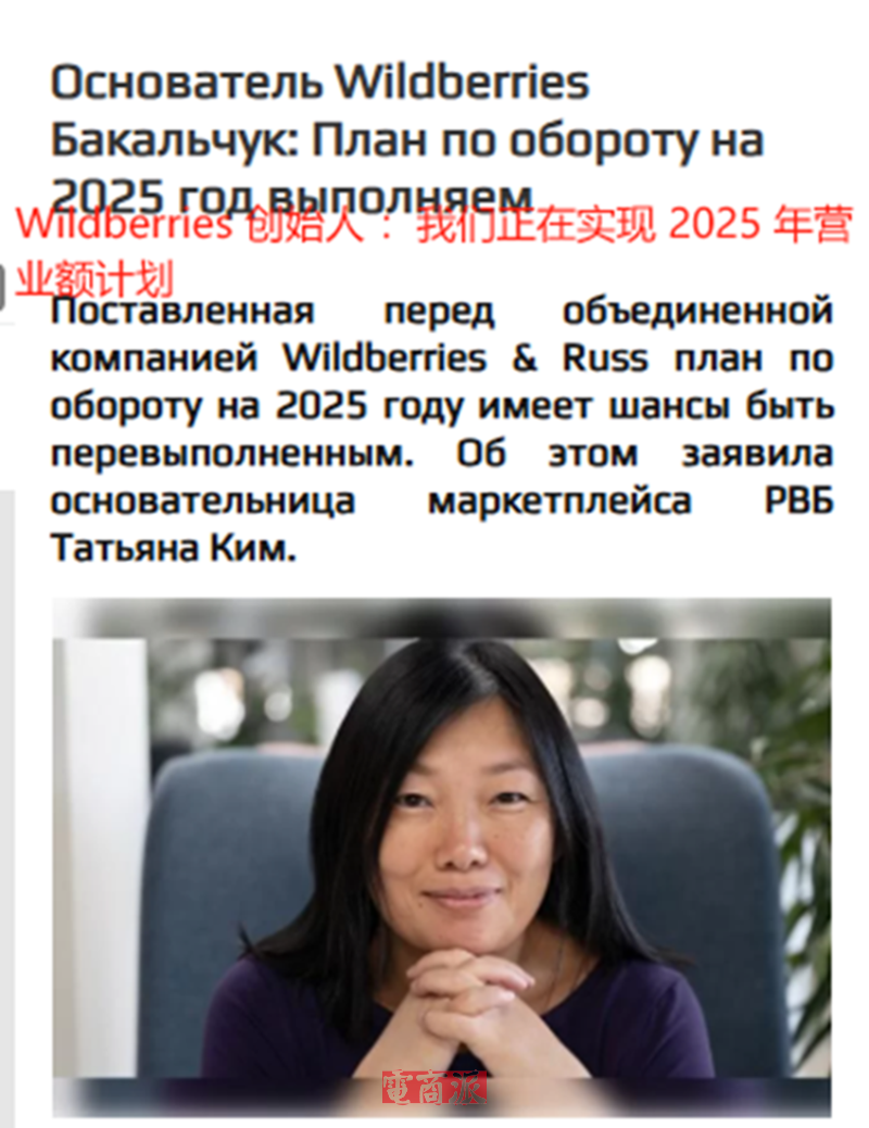 此前塔季揚娜·金就曾放出豪言,稱Wildberries今年的營業額目標可能會超額完成:“我不會透露2025年動態和營業額預測的具體數字,這仍然是一個驚喜。總的來說,我可以說,我們正在成功實現計劃成果,而且,我們有可能取得更大的成就……“