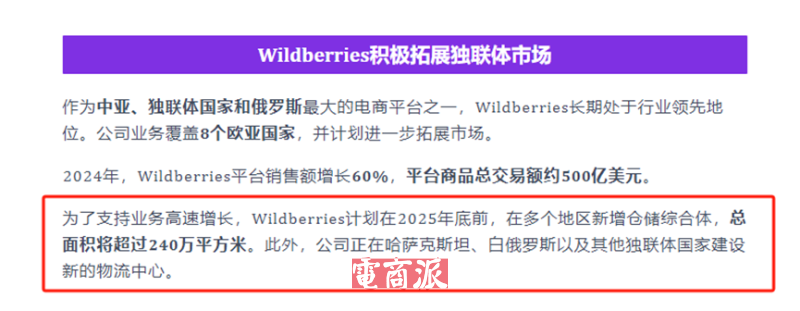 Wilsberries將在多地完善物流基礎設施建設 圖源:WILDBERRIES電商平臺