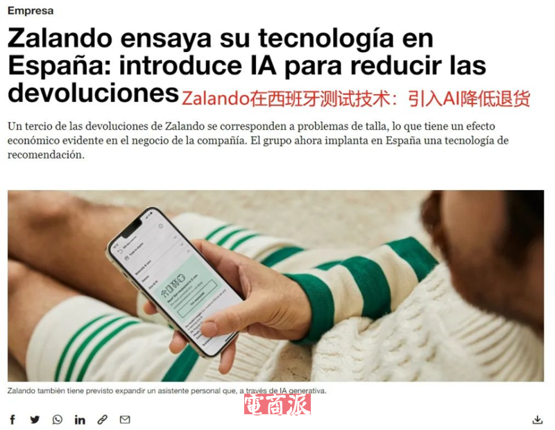 歐洲時尚電商巨頭Zalando就是通過AI等技術推出了一系列優化購物體驗的方案,用戶能根據精確的身體尺寸獲得個性化尺碼推薦。根據Zalando的數據,與不提供尺碼建議的商品相比,個性化推薦功能減少了高達10%的退貨率。