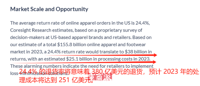經統計,處理一件退貨服裝的成本可能達到原始產品價格的30%-66%。2023年,僅在美國,服裝零售商預計收到了380億美元的退貨,而處理成本就高達251億美元。