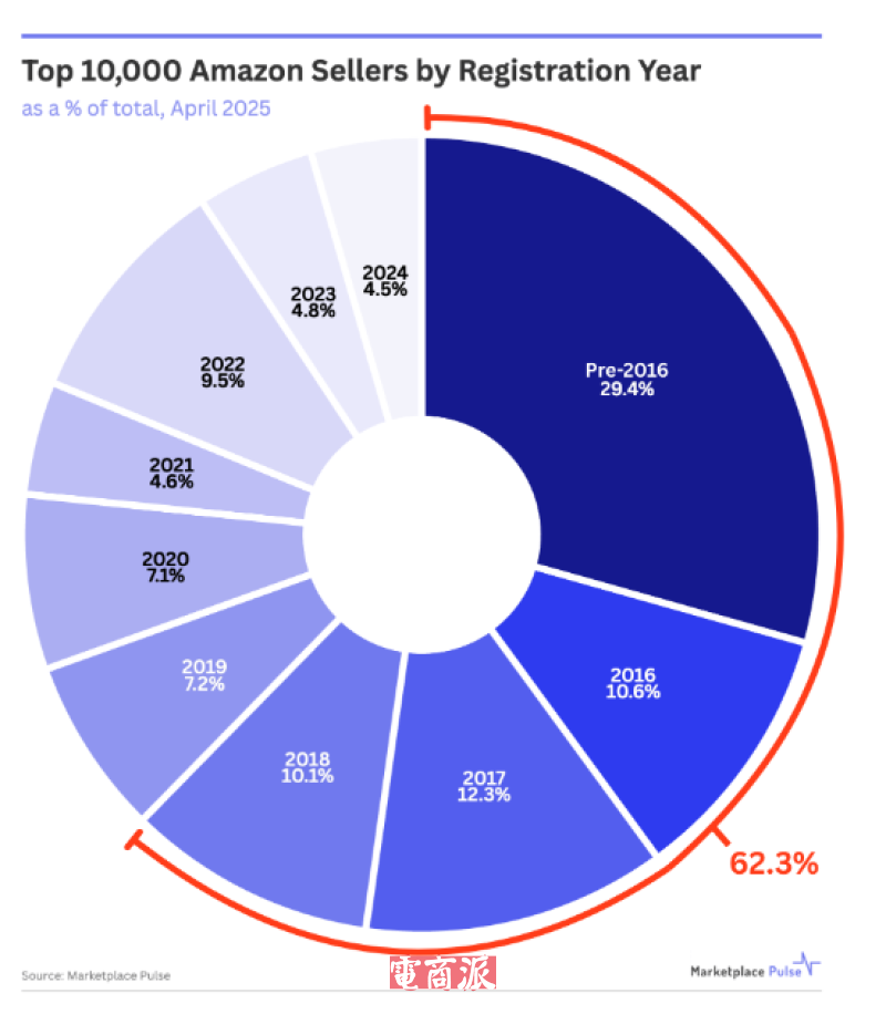頭部賣家中老賣家占比高 圖源:Marketplace?Pulse