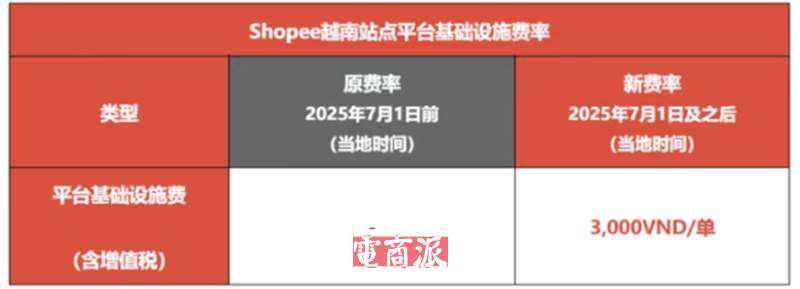 今年6月,越南電商巨頭Shopee就發布一則漲價通知,宣布為了給賣家持續提供優質的服務與資源,Shopee越南站點從2025年7月1日起新增一項平臺基礎設施費用,按照每單3000越南盾的標準收取。