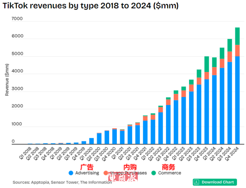 電商方面,TikTok Shop全年商品交易總額(GMV)突破300億美元。其中,美國和東南亞市場成為營收重點。在此基礎上,今年TikTok Shop加速擴張版圖,新開通墨西哥、德國、法國、意大利、日本等多個站點,預計未來受電商業務推動,TikTok營收還將更上一層樓。