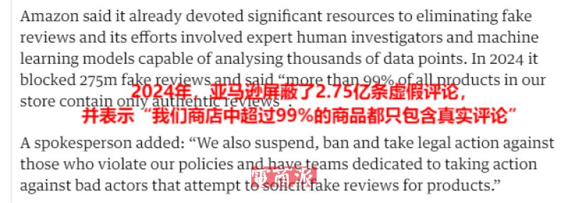 亞馬遜打擊虛假評論 圖源:The Guardian