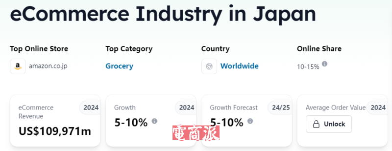 市場研究機構ECDB的數據顯示,2024年日本電商市場規模約為1099.71億美元,是僅次于中國、美國和英國的全球第四大電商市場。預計今年,同比增幅將在5%-10%之間,即2025年日本電商市場規模將在1154億美元至1209億美元之間。