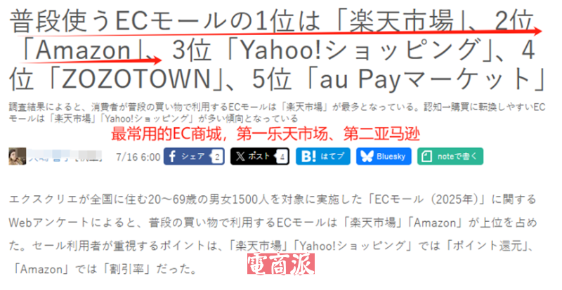 樂天購物和亞馬遜在日本最受歡迎 圖源:netshop