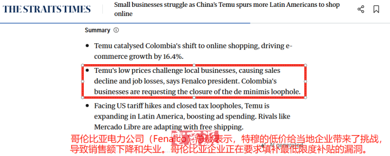 舉例來說,Temu以低價為核心競爭力的模式,在一定程度上影響了當地原有的商業生態平衡,對本地零售商造成了巨大的壓力,引發了本土企業的不安與抵制。此前,哥倫比亞零售協會(Fenalco)和巴西類似機構還呼吁政府收緊跨境電商的稅收政策,以保護本地企業