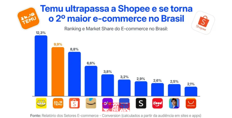 就以拉美市場為例,進入拉美后Temu 已擴展至智利、秘魯、烏拉圭等多個國家,展現出強勁的區域擴張勢頭。2024年6月,Temu正式進入拉美最大的電商市場巴西,不到一年時間Temu就做出了超越Shopee成為巴西第二大電商平臺的亮眼成績,雖然據最新數據已被反超,但這也足以證明其強勁的實力。