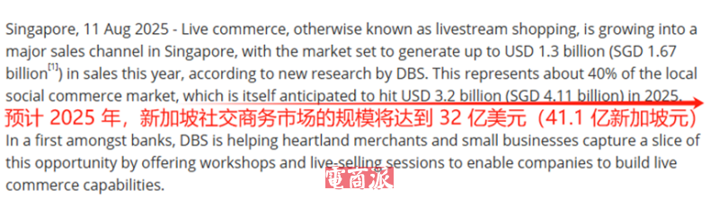 新加坡社交電商市場(chǎng)將達(dá)到32億美元 圖源:DBS
