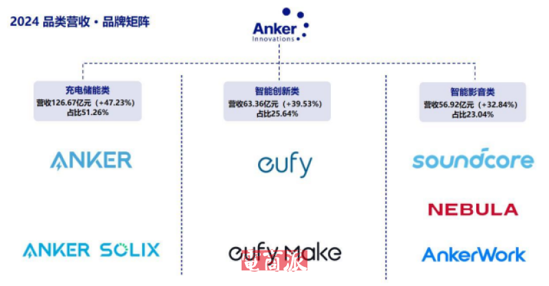 分業(yè)務(wù)來看,依然是充電儲(chǔ)能類(Anker系列)占據(jù)主導(dǎo)地位,智能創(chuàng)新類(eufy系列)和智能影音類(Soundcore)次之。報(bào)告期內(nèi),三大業(yè)務(wù)線分別營收68.16億元、32.51億元、27.98億元。