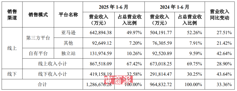 報(bào)告期內(nèi),安克創(chuàng)新線上營收86.75億元,占比67.42%,其中三方平臺(tái)以亞馬遜為主,eBay等平臺(tái)為輔,營收占比49.97%;自有平臺(tái)為獨(dú)立站,營收13.20億元,是線上增長最快的細(xì)分渠道;線下營收41.92億元,占比32.58%,該渠道主要是沃爾瑪、塔吉特、7-11集團(tuán)等海外主流零售商,或獨(dú)立3C商店等專業(yè)門店。