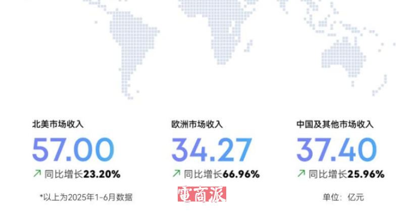 分地區(qū)來看,境外市場依舊貢獻(xiàn)營收大頭,收入124.16億元,同比增長33.92%,占比超95%。其中,北美市場為主陣地,營收57億元,同比增長23.2%;歐洲市場緊隨其后,營收34.27億元,同比增長66.96%;中國及其他市場營收37.4億元,同比增長25.96%。