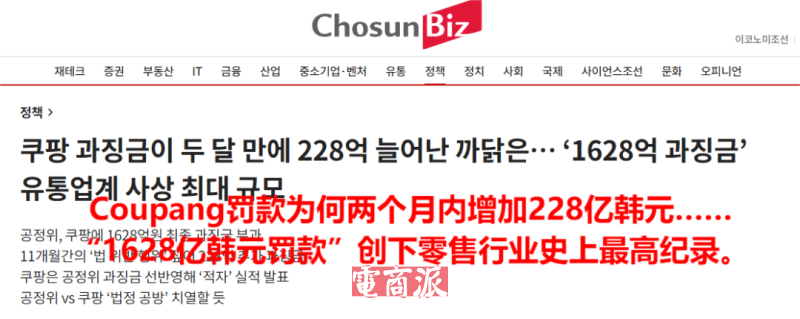 Coupang被罰款1682億韓元 圖源:biz.chosun