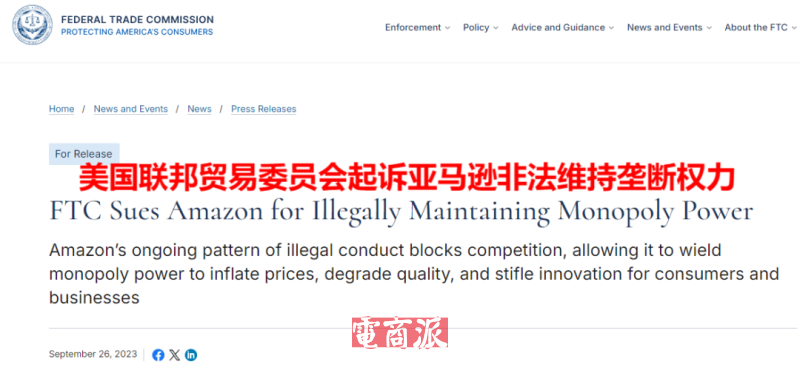 FTC指控亞馬遜壟斷市場 圖源:ftc.gov