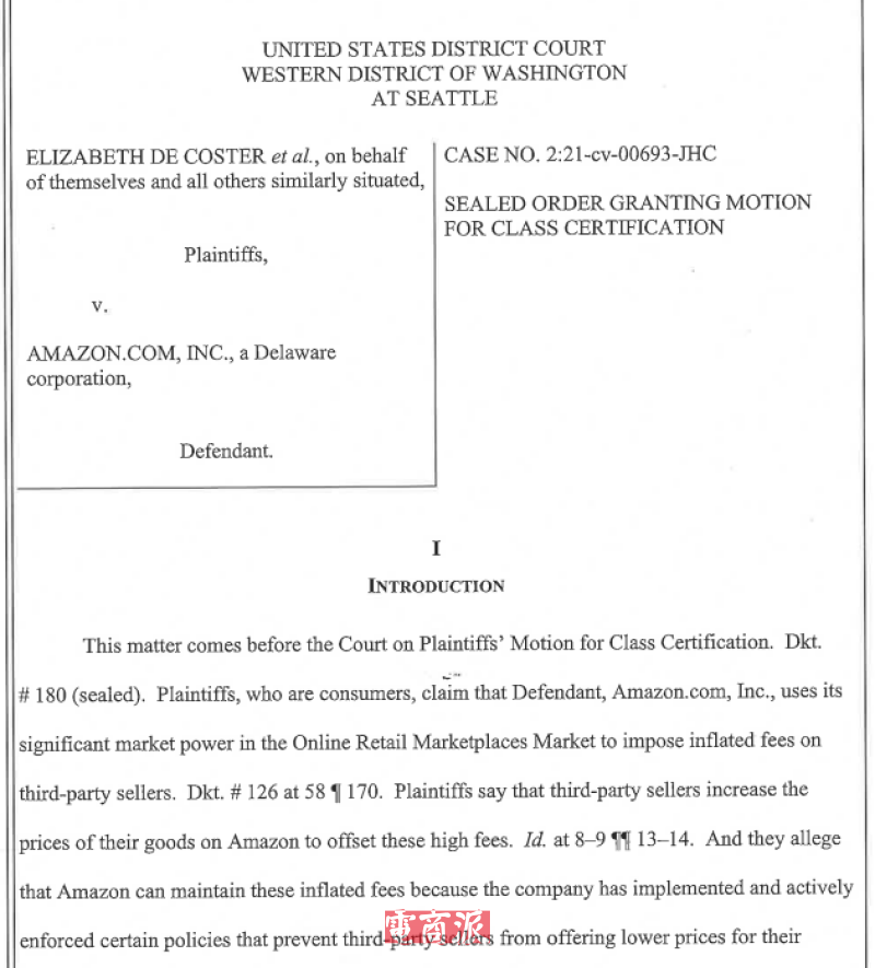 這是怎么一回事?原來,這項集體訴訟的核心指控內容是亞馬遜涉嫌壟斷市場,因為亞馬遜對第三方賣家收取過高的費用,同時限制了賣家在其他平臺以更低的價格銷售商品,導致更多成本被轉嫁給亞馬遜客戶,消費者須以更高的價格購買商品。