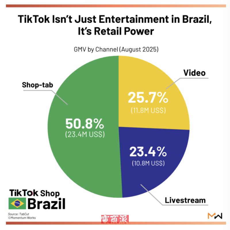 9月10日消息,Momentum Works發布的最新報告顯示,自2025年5月正式進入巴西市場后,TikTok Shop僅用三個月就將月度交易總額(GMV)從5月的100萬美元提升至7月的2570萬美元,增幅達25倍。8月,TikTok Shop在巴西的GMV已接近5000萬美元,達到4610萬美元,較7月環比增長79.4%,這一水平已經超過了TikTok Shop在2025年上半年新加坡的平均月度GMV。