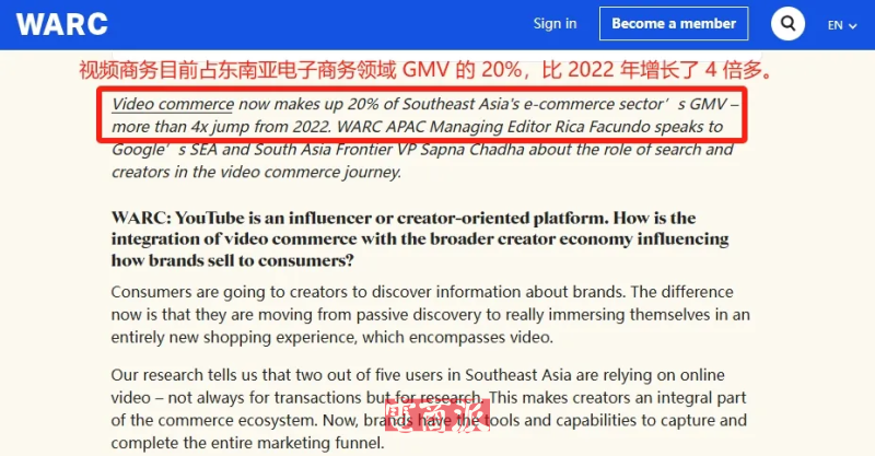東南亞視頻商務(wù)爆火?圖源:WARC