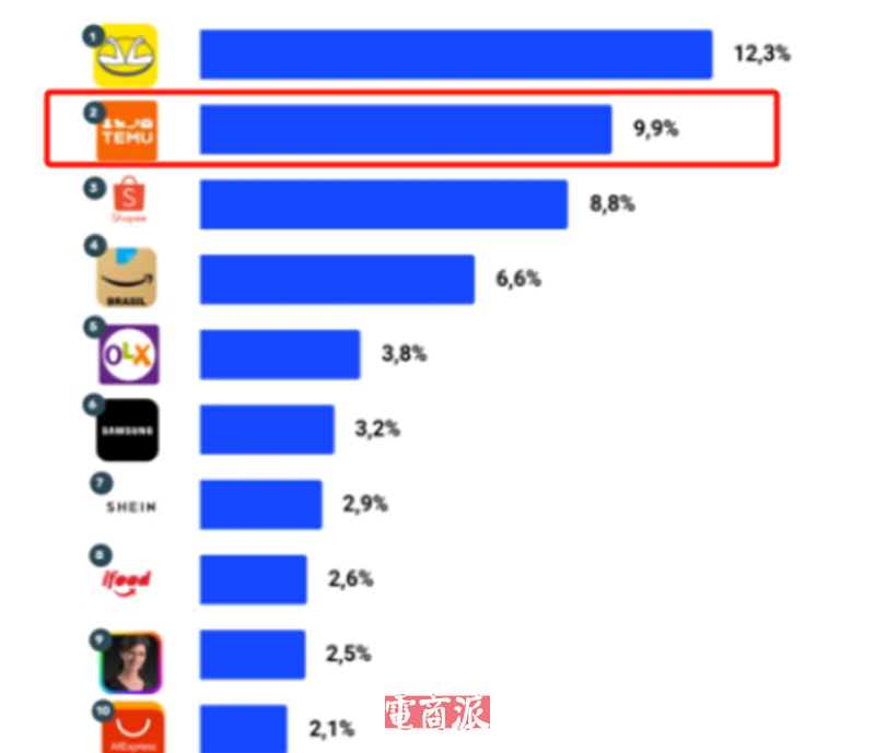 與此同時,新勢力Temu加速擴張市場份額。今年4月,Temu巴西站點單月點擊量新增5600萬次,以9.9%的流量份額超越Shopee,成為巴西第二大電商平臺。雖然6月,Shopee再次反超回來,但作為上線僅一年的新平臺,Temu這個表現(xiàn)也足以令市場驚嘆。