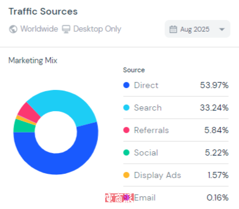 Olight獨立站流量來源占比 圖源:SimilarWeb